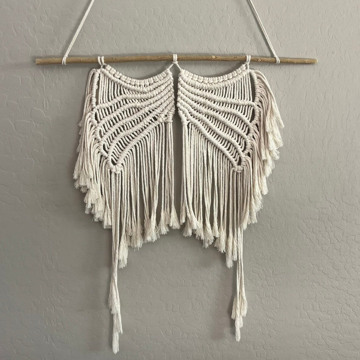 Natural angel wing hanging crafted on a natural branch. Measures 20"L x 22"W