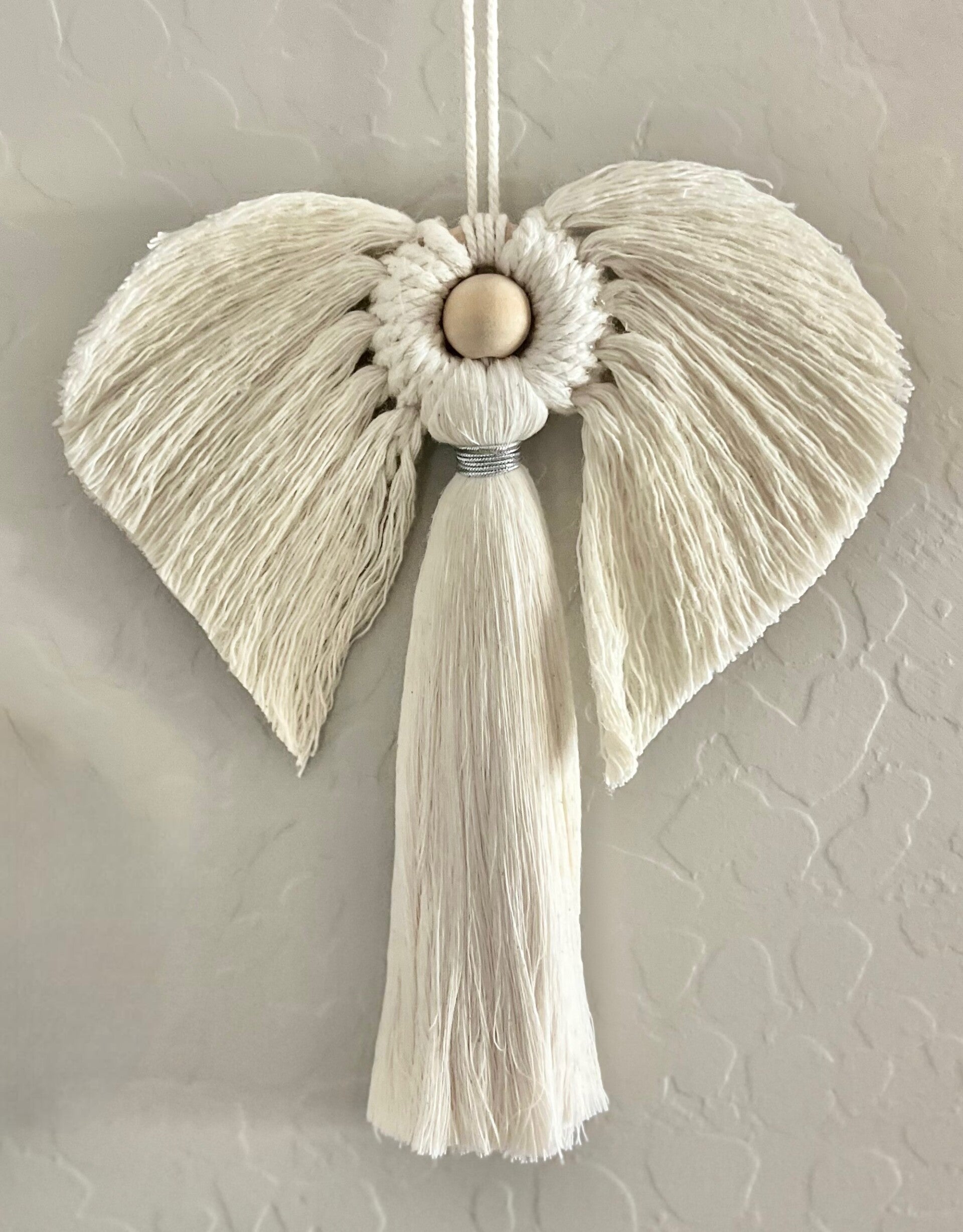 Beautifully simple, these macrame angels measure